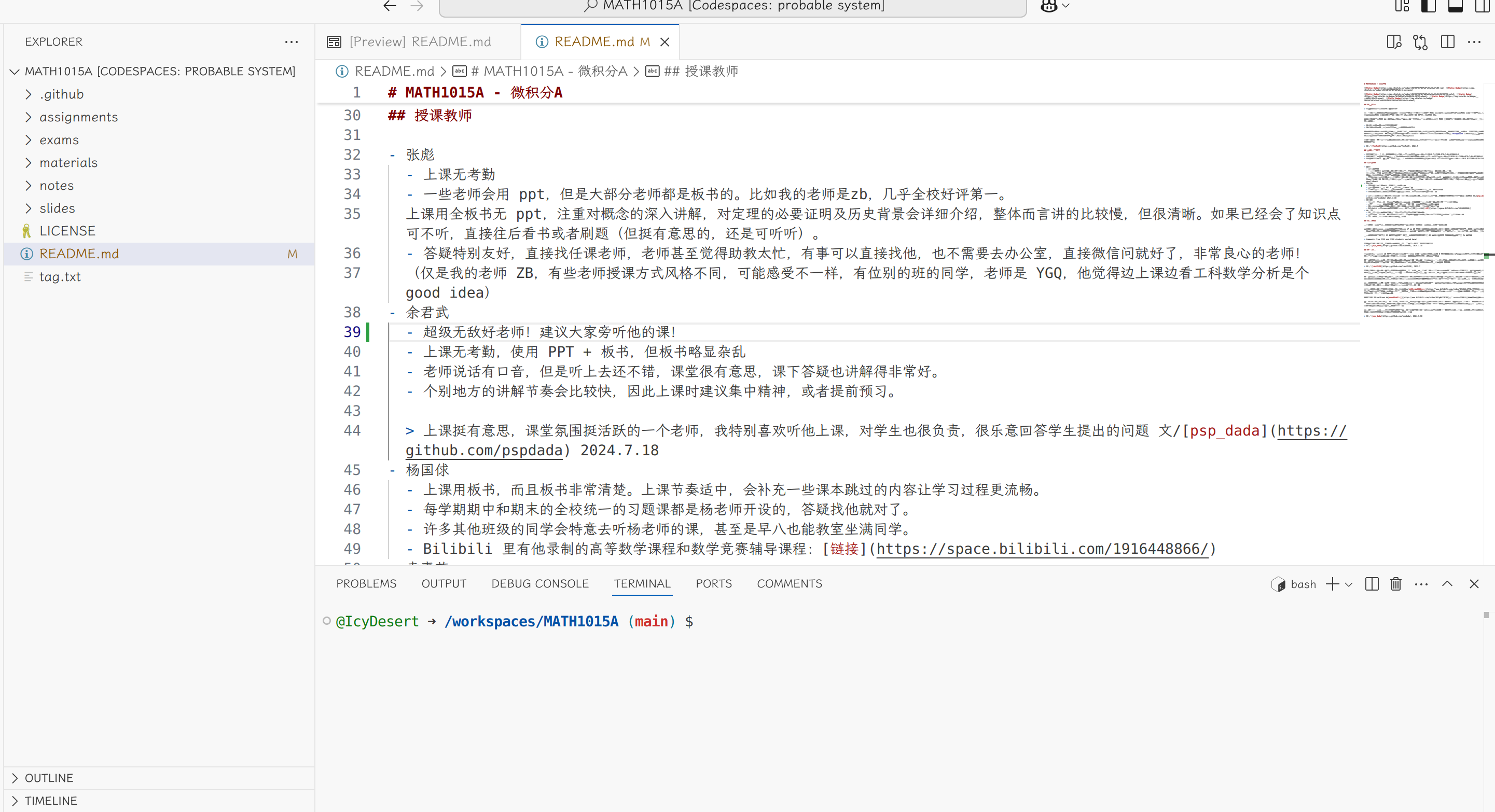 虽然 Markdown-Preview-Enhanced 插件在远程仓库中无法使用,但是此时只需要 Ctrl+Shift+V 打开 VS Code 内置的 Markdown 预览即可,所以不需要担心没法预览的问题。不过要再次提醒,其 Markdown 预览渲染和 hoa.moe 使用的 Hugo 渲染效果不同,仅供参考。